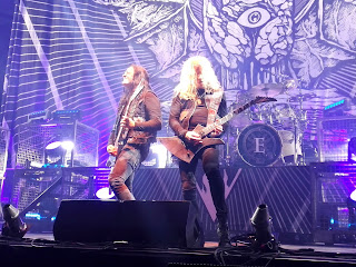 Then finally was time for my favourite vikings AMON AMARTH. They released a new album called "Berserker" in spring so they started with the first singl from that album "Raven's Flight". Even people sometimes say the new stuff is much softer I enjoy both kind of songs- older and newer. For example I love"Death in Fire" but also the new one "Crack the Sky" which is very jump-like and sing along song. And I did the both things 😃 I saw Amon Amarth 5times (I think) and the show is always better and better. You can always see Loki on the stage ("Deceiver of the God") or fighting vikings ("The Way of Vikings"). This time they added cannons full of gold confettis during "Father's Gold" and the big viking guards (kind of statues filled by air) during "Guardians of Asgaard". And I probably don't need to talk about the fire. The fire was everywhere! I always love when the metal musicians look evil on the stage but when they start to talk you just wanna hug them. Johan is like that. Even though he's got deep and harsh voice you can see he's just the biggest sweetheart. Well, all of them look like that. And I also got a pick.